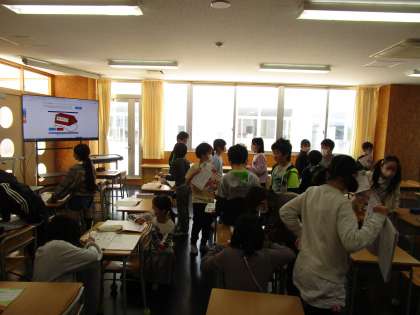 "I like ○○."と 4人以上の友達にインタビューしました。しっかり質問したり、答えたりすることができました。