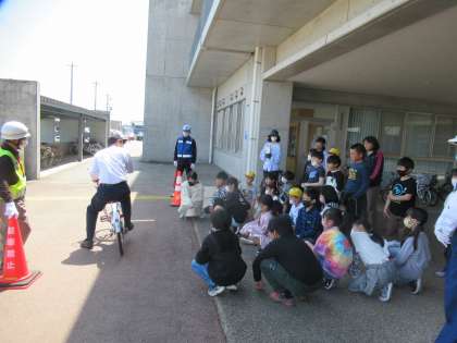 自転車教室を行いました。自転車の乗り方について、座学で学んだり、実際に乗ったりしました。今日学んだことを生かして、交通ルールに気を付けてほしいです。