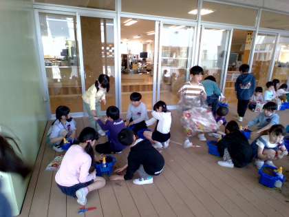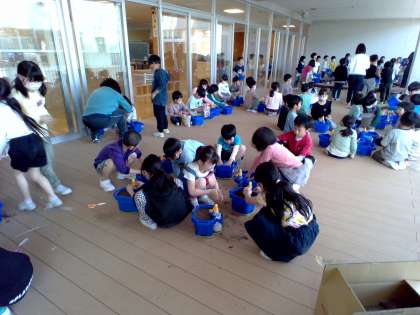 子供たちは、1年生のときに植えたチューリップの球根を抜き取り、プランターの土を入れ替えました。