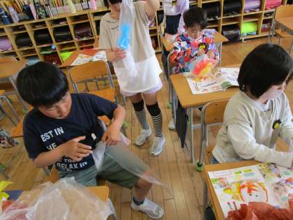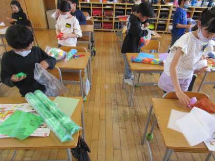 図工科で「カラフルフレンド」の学習中です。どんなお友達ができるのか楽しみです。