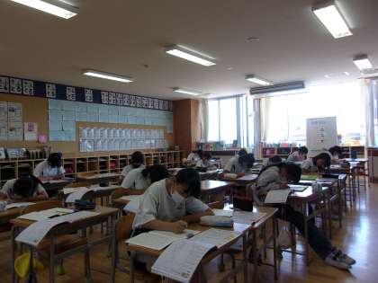 内科検診を待つ時間に漢字練習をしていました。どの子も一生懸命取り組んでいます。