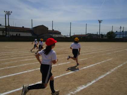 運動会では80m走をします。今まで50mを走っていた子供たちにとっては、とっても長く感じたと思います。今日は、走る順番の確認や実際走ってみるということをしました。本番が楽しみです。