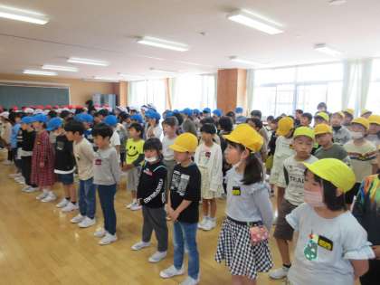3時間目に運動会の全体練習として、2年生と合同で、歌の練習をしました。運動会の歌は、各団違うメロディーやパートを歌います。全部の団が揃って歌う最後の部分に注目です。