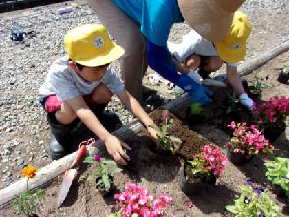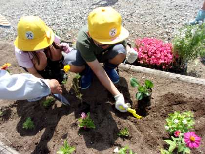 これまでに花の学習をしてきて、こんな花壇にしたいという気持ちを膨らませながら、ついに「123m花壇」に花を植えました。大事に花を持ったり、たくさん水やりをしたり、それぞれが花壇に対する想いをもちながら、活動しました。大変暑い中、地域の方にもたくさんお世話になり、感謝の気持ちを募らせる子供たちでした。
