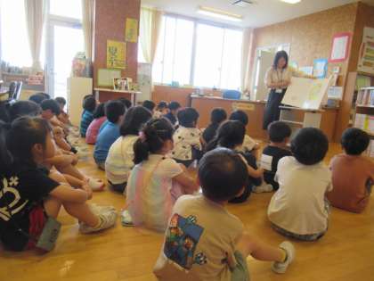 今日は、読み聞かせ会がありました。大きな絵本もあり、子供たちは物語の世界に入り込んで集中して聞いていました。終わった後は、「面白いお話だったな」「また読んでほしいな」とうれしそうに話していました。