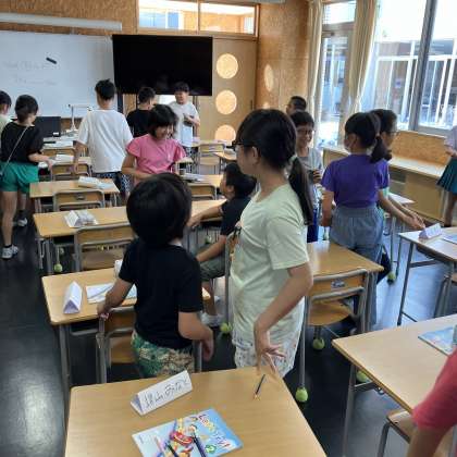 この日は「What time is it?」の練習をして、とても盛り上がりました。