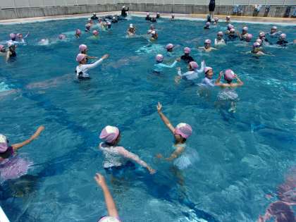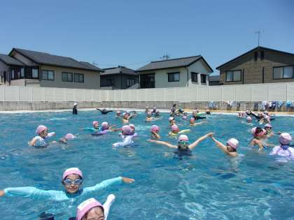 今年度初めてのプール学習でした。プールの中で、ゾウになったり、フラミンゴになったり、動物の動きをしながら水に親しみ、楽しんでいました。