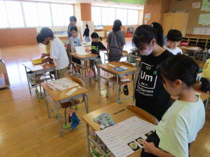 夏休みの一人一研究の発表会をしました。どの子も、工夫を凝らして作品を仕上げたり、実験や観察をまとめたりしており、緊張しながらも、自信をもって発表していました。友達の研究や作品にも興味をもち、互いにじっくりと見合っていました。