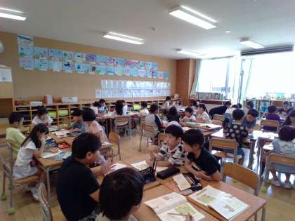 国語科「ことばでみちあんない」の学習では、待ち合わせ場所が正しく伝わるにはどうすればよか、友達と話し合いながら考えました。