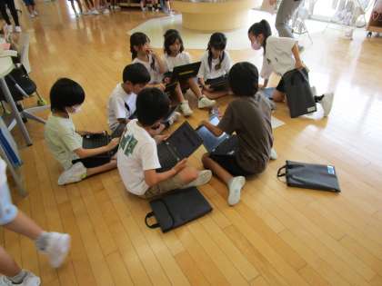 3年生は、学習発表会で総合的な学習で学んできたことを伝えるために、ダンスを練習しています。グループごとに協力して、クロムブックで動画を見たり、話し合ったりして、よりよいダンスになるように頑張っています。