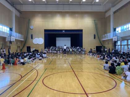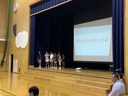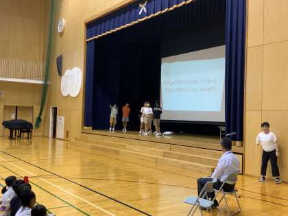 全校集会では、集会委員会さんが企画してくれた、猛獣狩りゲームや歌を歌う時間がありました。最後には、5年生がサプライズでRPGを演奏する時間を頂きました。子どもたちは、初めての大勢の人の前での演奏でしたが、練習してきた成果をしっかり発揮することができました。