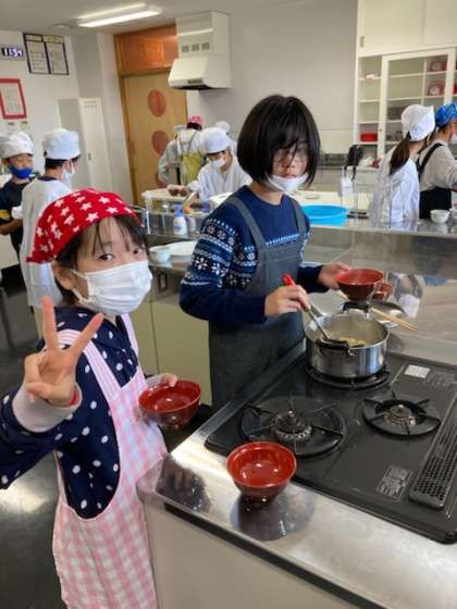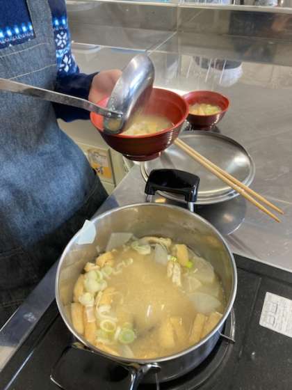 にぼしのだしで、大根と油揚げとねぎのお味噌汁を作りました。具材を切ることや出汁をとること一つ一つていねいに、一生懸命取り組んでいました。