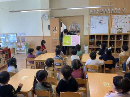 第二回保育園交流を行いました。子どもたちは、より仲良くなるために目当てをもち取り組んでいました。前回と比べて、どのチームも落ち着いて園児たちと関わっていました。