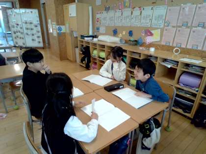 子供たちは、友達に相談してみたいことを考えて、グループで話し合いました。友達から意見をもらい、生活に役立てようとしていました。
