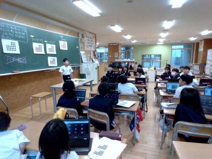 算数科では、チョコレートの個数の数え方をかけ算を使って考えました。子供たちは、まとまりで考えることで、速く簡単に計算できることに気付いていました。