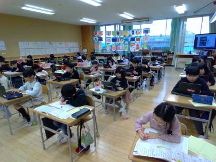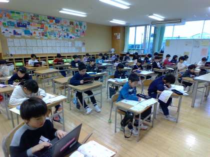 毎週金曜日の5時間目は、「パワーアップタイム」として2学期から行っています。子供たちは、算数か国語のどちらかを選び、目当てを立て、自分で決めたことに取り組んでいます。子供たちの学習における「自己調整力」が高まることを期待しています。