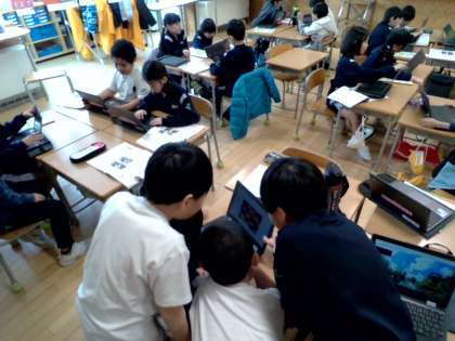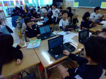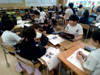 子供たちは、オリンピックとパラリンピックの旗の意味を知り、外国に興味をもちました。子供たちは、自分が気になる国について調べ、友達に紹介していました。