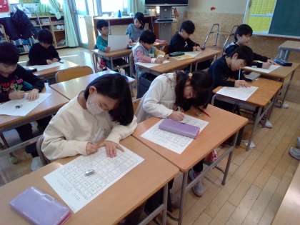 子供たちは、漢字チャレンジテストに向けて練習をしています。子供たちは、少しずつ力を付けてきていることを実感しているようです。