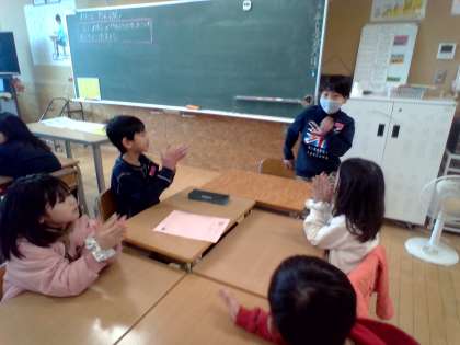 生活科の学習では、「2年生になってからできるようになったこと」を友達と伝え合い、これまでのがんばりを実感していました。発表を聞いた子供たちは拍手をして、友達のがんばりを称えていました。