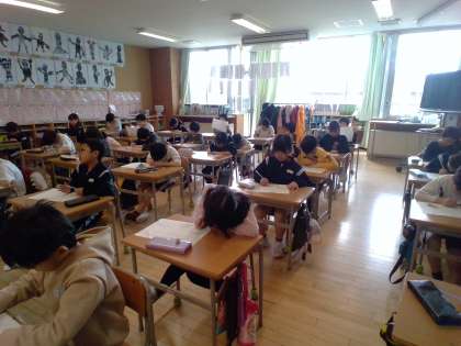今日は、学習のたしかめ「国語」を行いました。子供たちは、最後まで根気強く取り組んでいました。