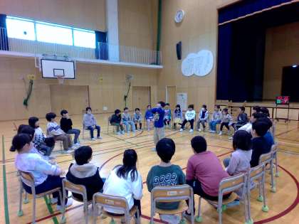 子供たちは最後の集会に向けて、一生懸命準備を進めてきました。集会係は、「思い出バスケット」と称して、お題はすべて1年間の思い出にして、フルーツバスケットを企画しました。「フルーツバスケット」の代わりに「ひまわり」と学年目標を使うなど、工夫が凝らされていました。
