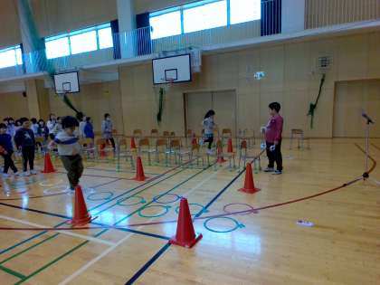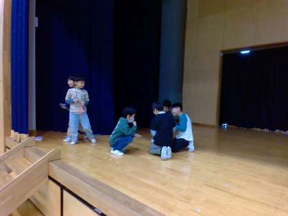 クイズ係は、1年間の思い出をクイズにして、お笑い係がジェスチャーで出題しました。答える人は、「ケンパ」をしてボタンがあるところに行くように工夫していました。