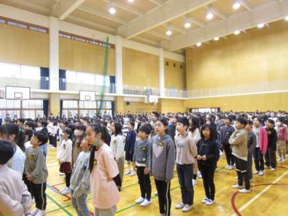 新しい先生方を歓迎する気持ちで、校歌も元気よく歌いました。