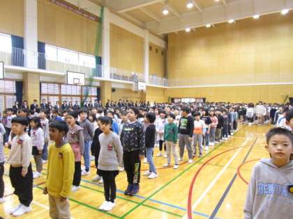 子どもたちは校長先生のお話を真剣な顔で聞いていました。