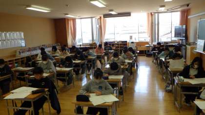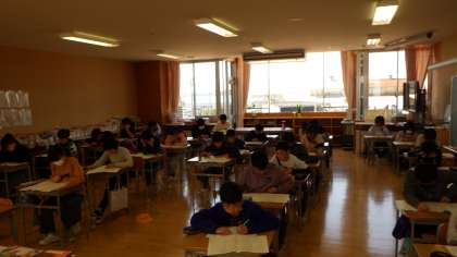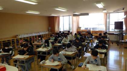 学力調査を行いました。集中して取り組む子供たちでした。明日は、算数科と社会科を行います。