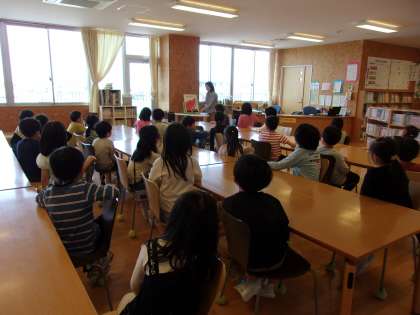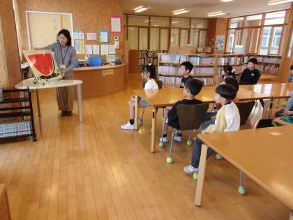 図書室オリエンテーションがありました。今年度も図書室の利用がスタートするということで、子供たちはとてもうれしそうでした。司書の先生に、絵本の読み聞かせをしていただいたり、図書室の利用の約束をクイズ形式で教えていただいたりしました。