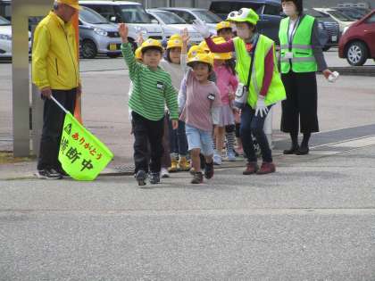 下校時も横断歩道で手を挙げたり、左右を確認したりするなど、安全に気を付けて下校していました。