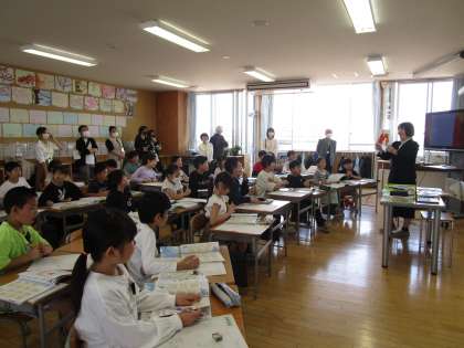 4年1組の学習の様子です。たくさんの保護者の方々に見守られ、張り切って取り組んでいました。