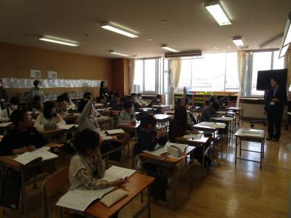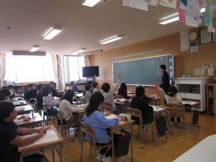 授業参観では、漢字の成り立ちについて学習しました。犬の点は何を表しているのかなど、一画一画には意味について考えました。