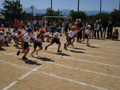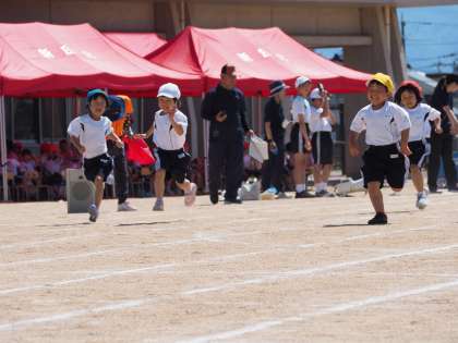 今日は、初めての運動会でした。50メートル走では、最後まで全力で走りました。