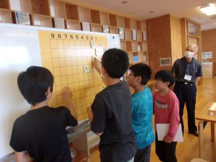 地域の方から囲碁将棋を教えてもらっています。対局したり、出された詰め将棋の課題に取り組んだりしています。意欲的に取り組む子供たちです。