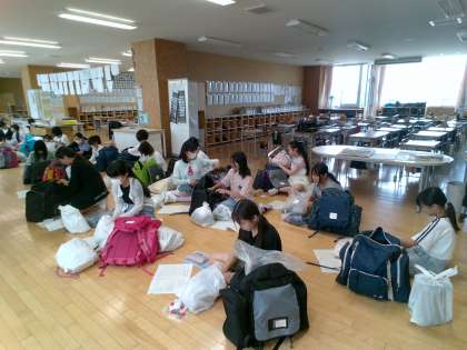 来週の集団宿泊学習に向けて、荷物の確認を行いました。