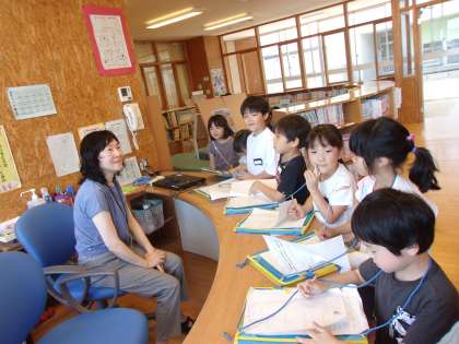 司書、スクールサポーターの先生へのインタビューの様子です。