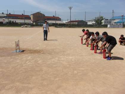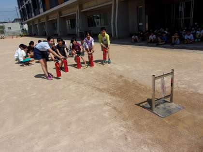 消防署の方から、消化器の使い方や火災予防について教えて頂きました。