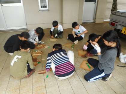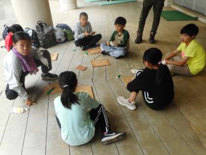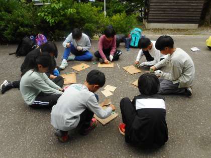 竹箸づくりをしました。この後、豚汁を食べるときに多くの子が自分の箸を使っていました。自分の名前を入れたり、丁寧に磨きをかけたりと箸づくりを楽しんでいました。