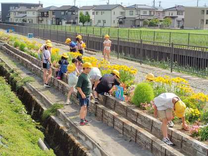 今日は、123m花畑に行き、草むしりをして看板を立てました。植えた頃よりも立派に成長し、すてきな花畑になってきました。