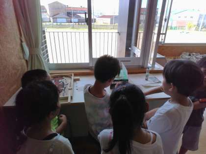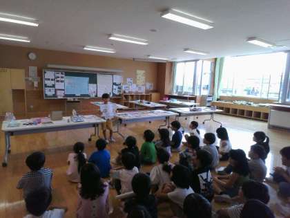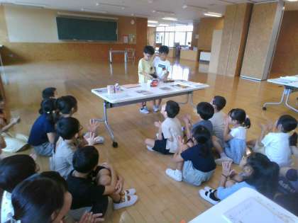 夏休みに取り組んだ一人一研究の発表会を各クラスで行いました。一人ずつ発表した後は、他のクラスの作品も見て回りました。子供たちは、友達の作品に興味津々でした。