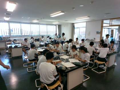 どのように月が輝くのか、模型を作成して光り方を観察しました。