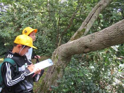 2日目は森の木オリエンテーリングをしました。天気が心配でしたが、子供たちの元気パワーが天にも届いたようです。