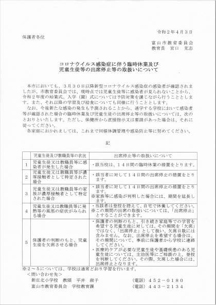 富山市教育委員会より連絡がありましたので、お知らせいたします。