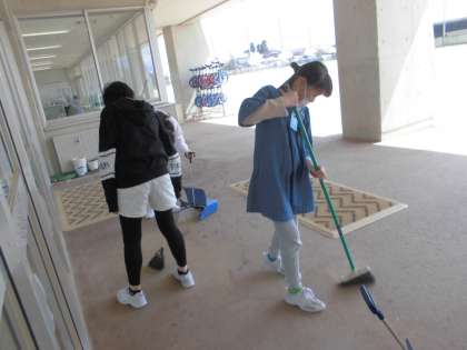 新年度初日から、6年生は最高学年としての仕事がありました。明日の入学式に向けて、清掃や飾り付けを行いました。