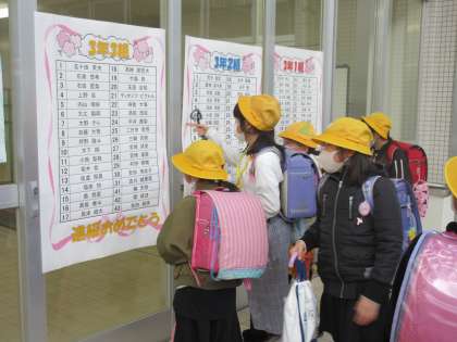今日から新年度がスタートしました。子供たちは新しいクラス、新しい友達、新しい担任の先生を楽しみにしながら、玄関に掲示されている名簿に見入っていました。
