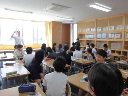 今年度もグレッグ先生と一緒に学習します。昨年度の学習した表現を使いながら、好きなもの当てクイズやサイモンセイズゲーム等をしました。