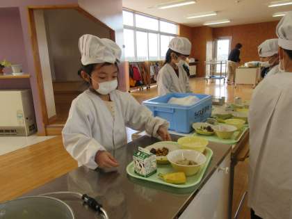 今週は初めての給食もありました。「いい匂いがしてくるな」と子供たちは給食の時間をとても楽しみにしていました。友達と一緒に協力して給食の準備に取り組み、「おいしいな」と笑顔いっぱいで給食を食べる子供たちでした。