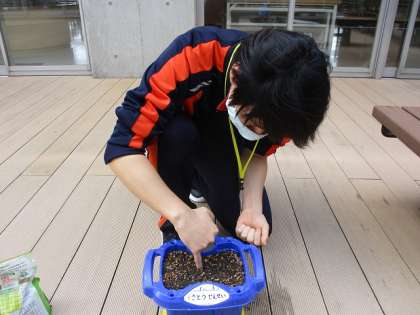 さとうせんせいは、13にちに あさがおの たねを うえました。