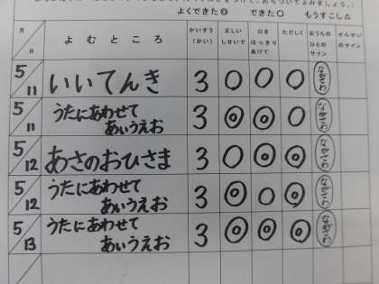 こくごでは、まいにち おんどく していますか?おんどくかあどは、おうちのひとにきいてもらって◎や○をつけてもらおうね。おなじぶんを、なんかいもよむと、すらすらになったり、おぼえたりすることができますよ。かだいのほかの ぶんを おんどくしてもいいですよ。くちの かたちに きをつけて よんでみましょう。